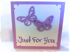 Being that these are quite small, I decided to go the clean and simple route. I have just used my slice cutter to cut out different shapes in different colour card stocks, then matched those colours to the card base, stuck some white card stock on which I have stamped a sentiment and then popped the shape with foam. Wah Lah little cards completed. We didn’t want happy birthday or congratulations or anything specific, so I just stuck with “Just for you”, it can be used for most anything.